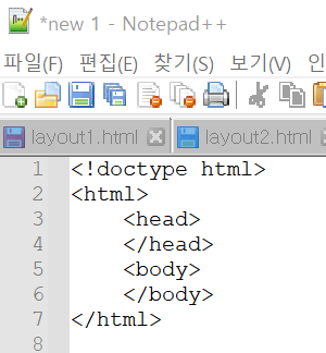 1. html 문서 타입 지정 및 head와 body 태그 만들기
