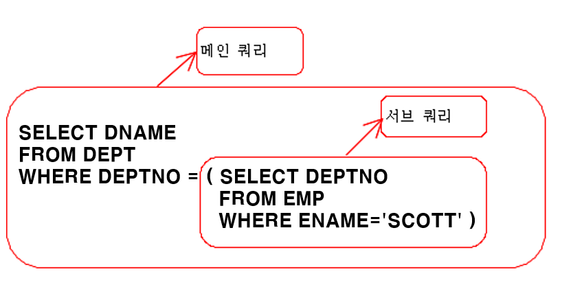 서브쿼리란 ? 쿼리 안의 쿼리를 말함/ 조건 2개를 보여줘야할 때 사용