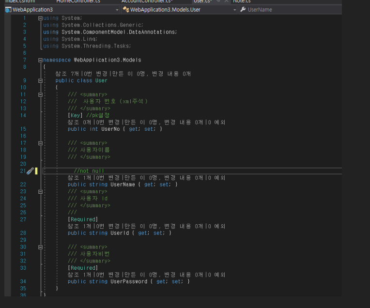 -> razor syntax로 어떤 모델에서의 user Id인지 정의 필요 @model WebApplication3.Models.User