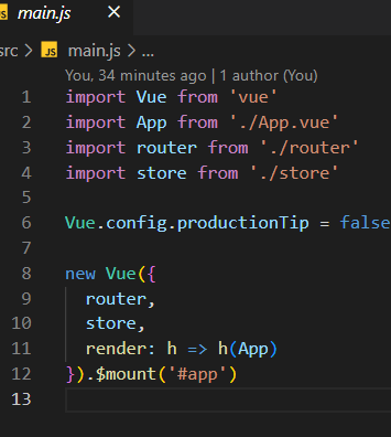 인스턴스를 생성하고 index.html 파일과 연결해준다. router, store를 사용하기 위한 Vue 함수를 넣어줌