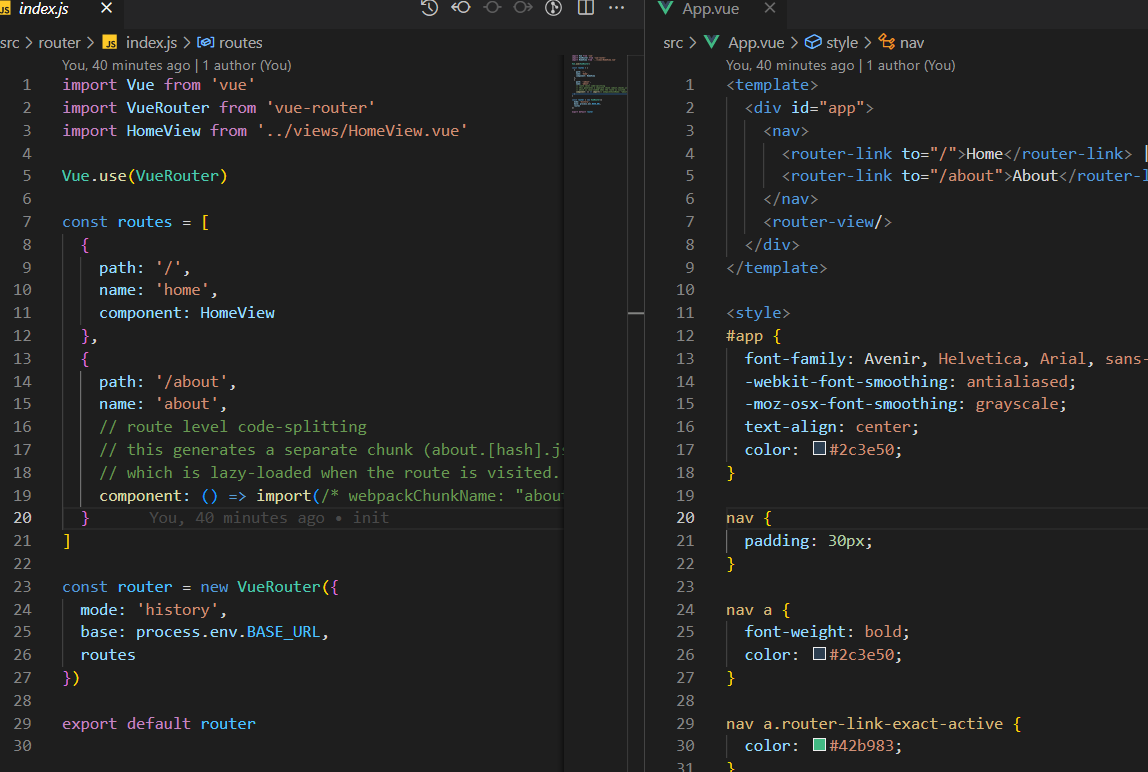 >> App.vue에서 Home을 클릭 -> router에서 설정한 path, name = home 에 맞는 component 값 = views/Homeview.vue 을 찾아서 보여줌