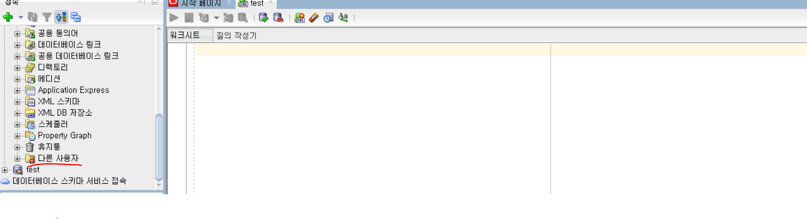 우선 sysdba계정으로 접속 후 다른사용자 섹션을 클릭한다