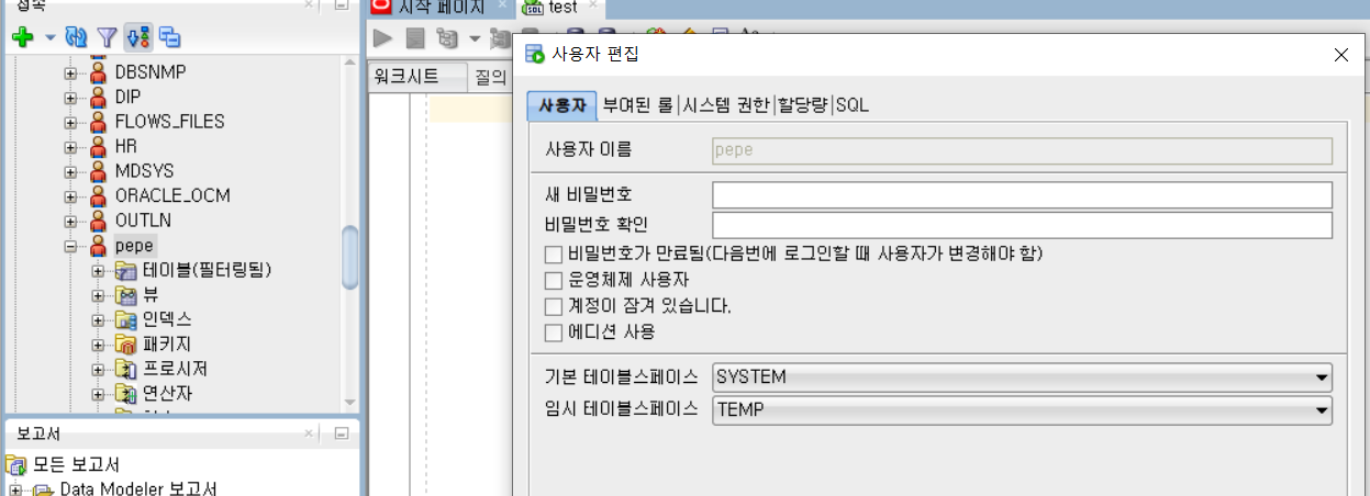 Oracle sql developer에서 계정 생성 후 암호를 수정할 수 있다